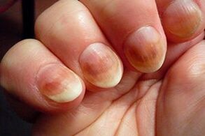 With the promotion of the disease, the nail acquires a yellow shade, stripes and stains on it appear on it.The nail plate thickens, becomes thinner, softens, break up, break.Depending on the type of disease, symptoms and phases of their events differ.